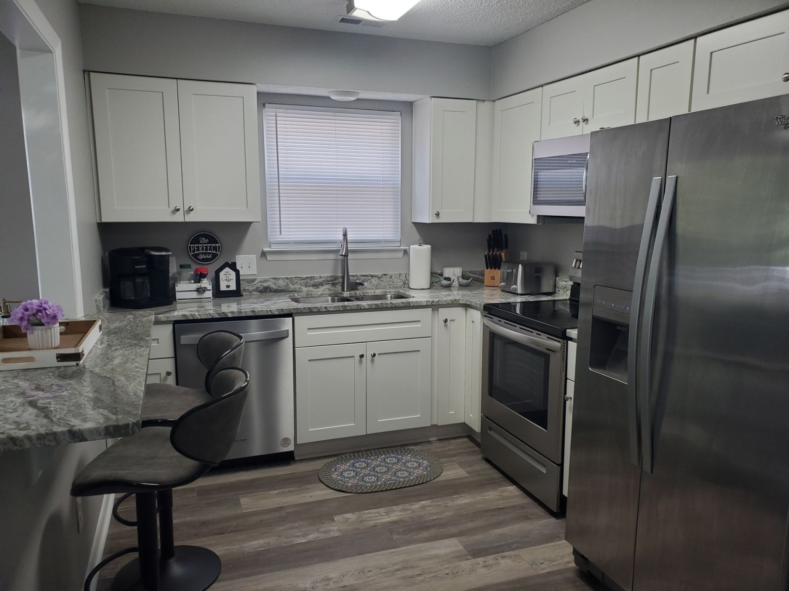 This is a newly remodeled second story 2 bedroom 2 full bath condo. TVs in the common area and both bedrooms. Internet & Roku media options provided. With a king sized bed in the master and a full-sized bunk bed in the second bedroom, this home comfortably sleeps 6. Fully outfitted kitchen, and a washer & dryer. You’ll find bedding, sheets, blankets, towels for bed & bath. Dinnerware & cookware provided. Just bring your suitcase and groceries. We do our best to provide everything else.