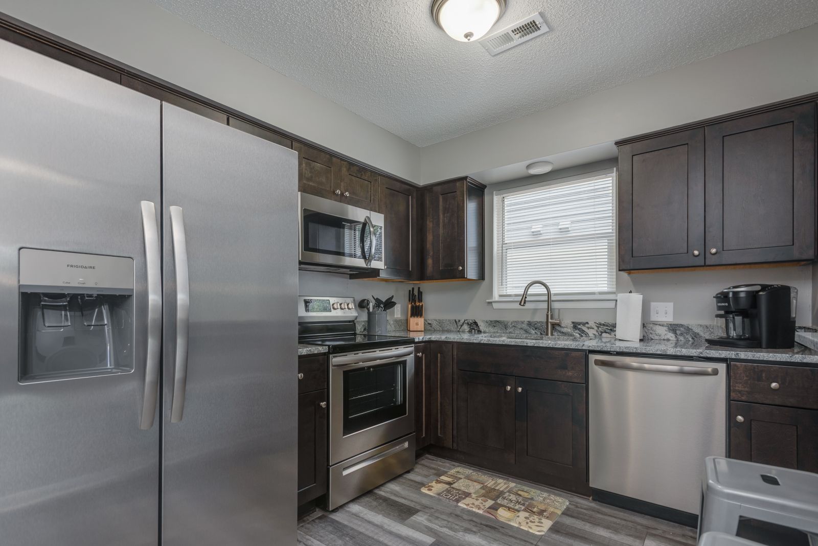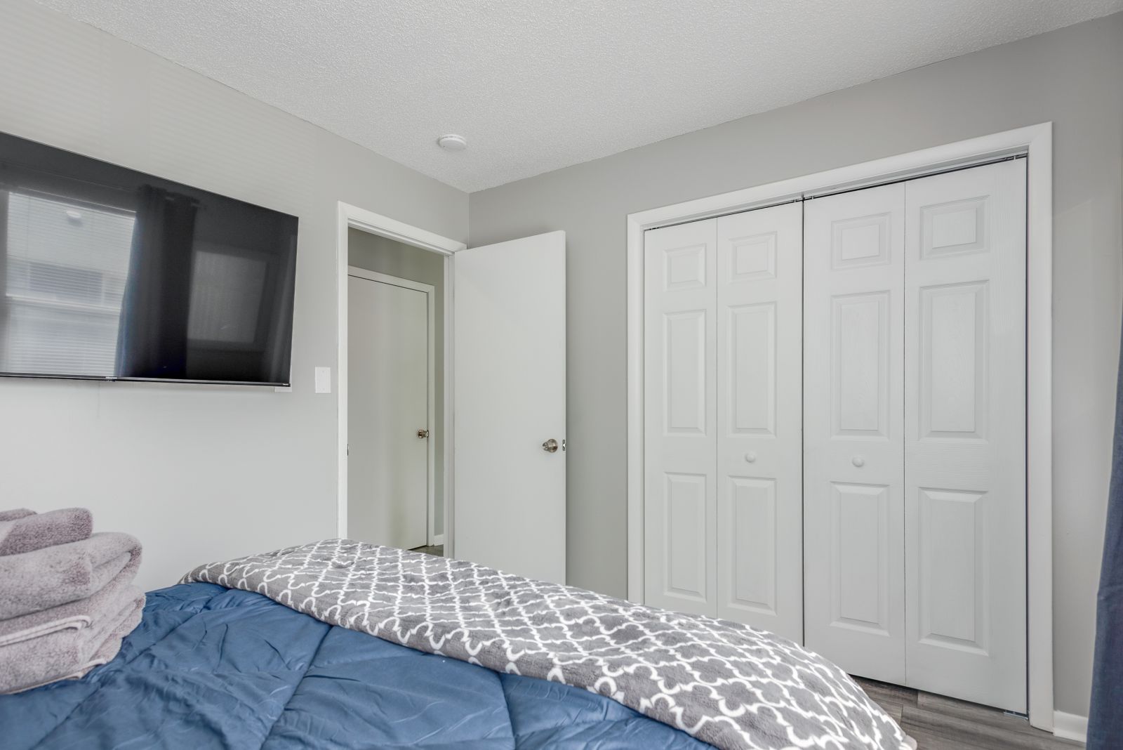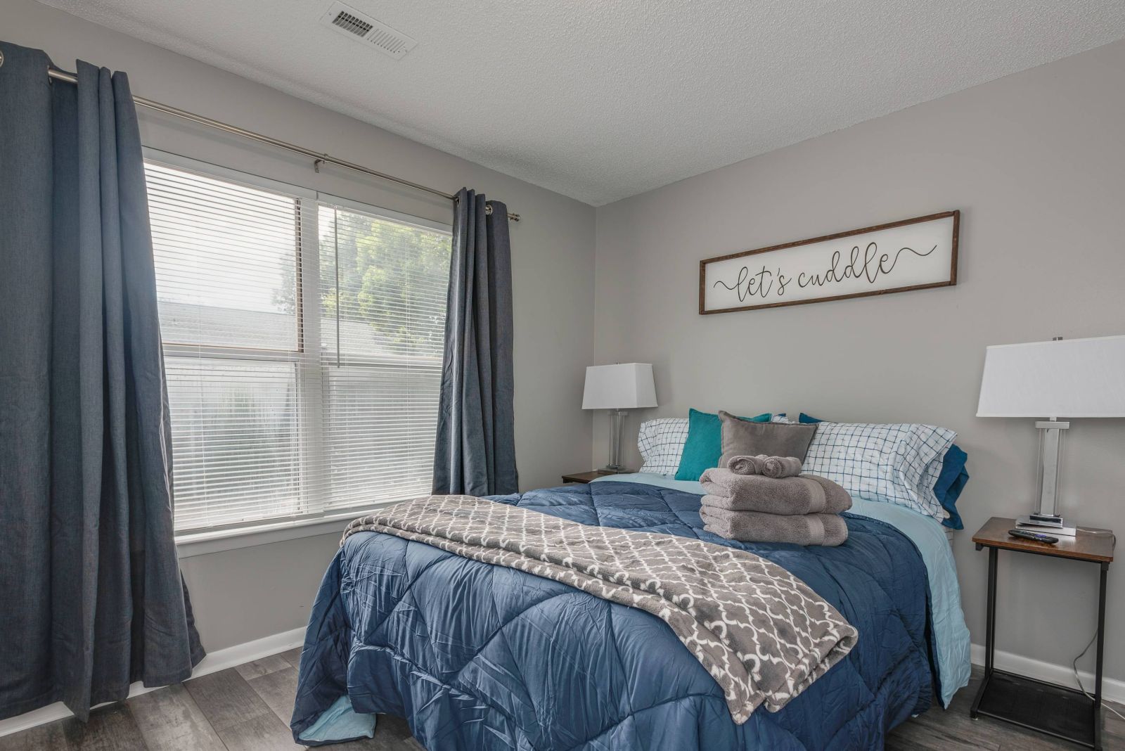 This is a newly remodeled second story 2 bedroom 2 full bath condo. Includes full-size washer and dryer. TV in the common area, TV in the master bedroom. Internet & Roku media options provided. With the living room sofa and double thick air mattress, this home comfortably sleeps six. Queen sized beds in each room You’ll find bedding, sheets, blankets, towels for bed & bath. Dinnerware & cookware provided. Just bring your suitcase and groceries. We do our best to provide everything else.