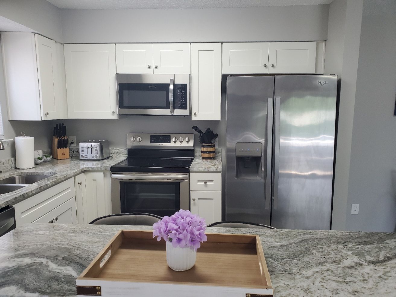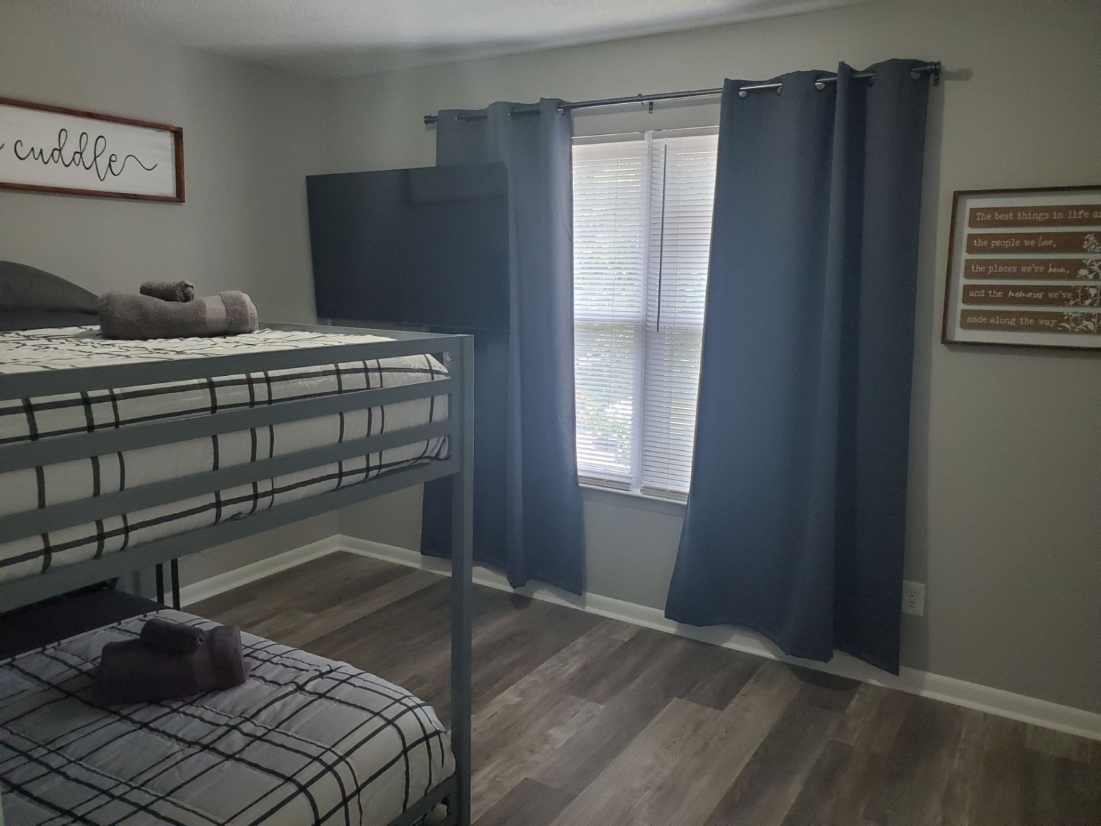 This is a newly remodeled second story 2 bedroom 2 full bath condo. TVs in the common area and both bedrooms. Internet & Roku media options provided. With a king sized bed in the master and a full-sized bunk bed in the second bedroom, this home comfortably sleeps 6. Fully outfitted kitchen, and a washer & dryer. You’ll find bedding, sheets, blankets, towels for bed & bath. Dinnerware & cookware provided. Just bring your suitcase and groceries. We do our best to provide everything else.