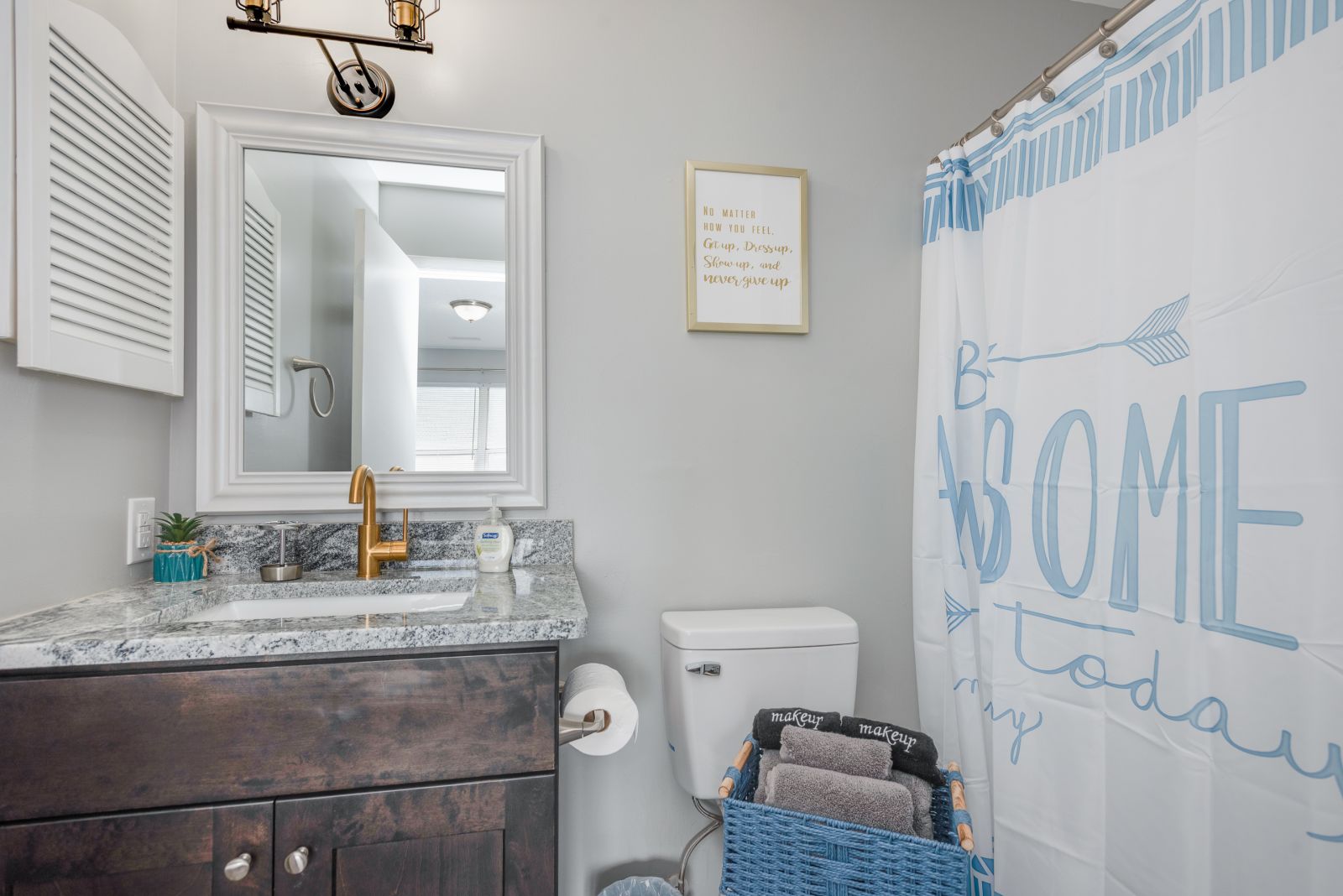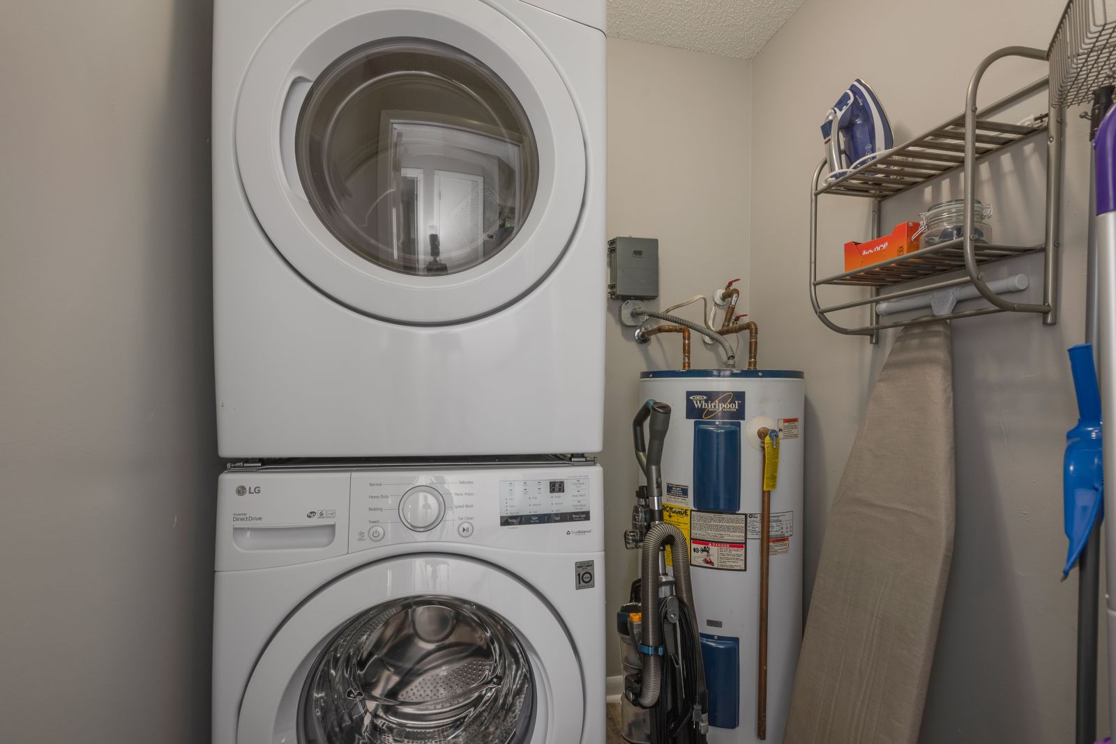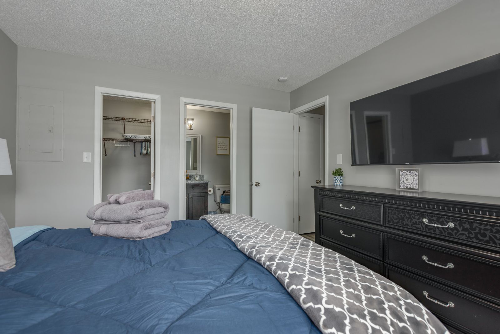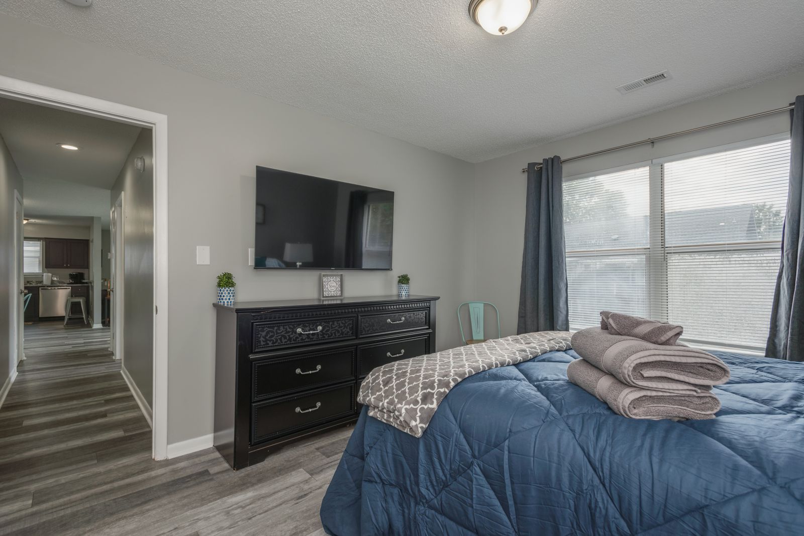 This is a newly remodeled second story 2 bedroom 2 full bath condo. Includes full-size washer and dryer. TV in the common area, TV in the master bedroom. Internet & Roku media options provided. With the living room sofa and double thick air mattress, this home comfortably sleeps six. Queen sized beds in each room You’ll find bedding, sheets, blankets, towels for bed & bath. Dinnerware & cookware provided. Just bring your suitcase and groceries. We do our best to provide everything else.